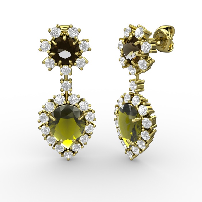 Peridot, pırlanta ve dumanlı kuvars 14 ayar altın küpe (0.792 karat)