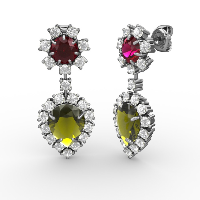 Peridot, pırlanta ve rodolit garnet 8 ayar beyaz altın küpe (0.792 karat)