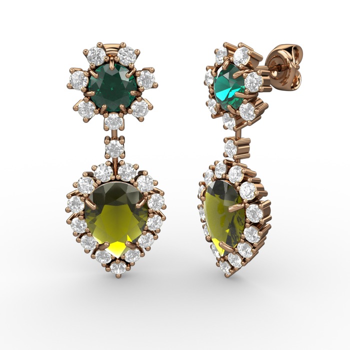 Peridot, pırlanta ve yeşil kuvars 8 ayar rose altın küpe (0.792 karat)