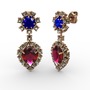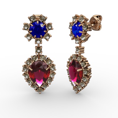 Rodolit garnet, dumanlı kuvars ve lab safir 925 ayar rose altın kaplama gümüş küpe