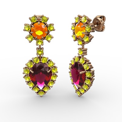 Rodolit garnet, peridot ve sitrin 8 ayar rose altın küpe