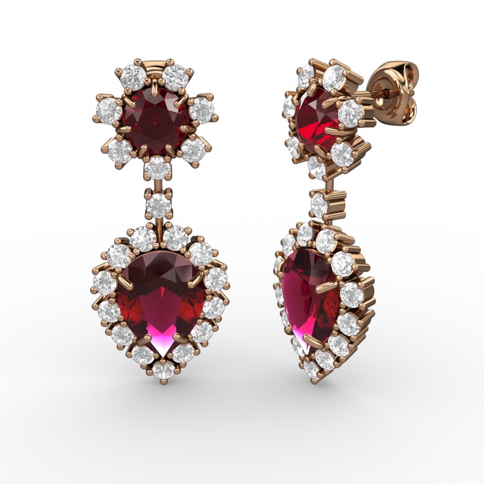 Rodolit garnet, swarovski ve garnet 14 ayar rose altın küpe