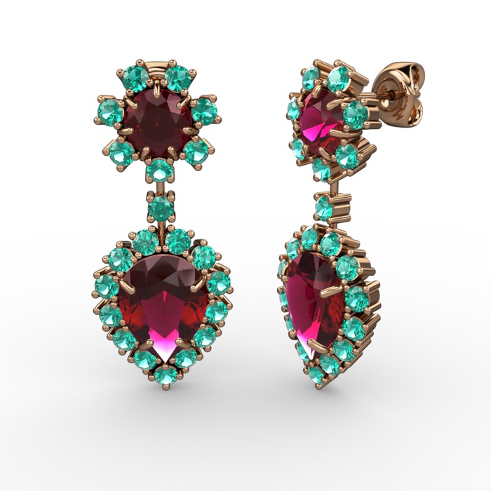 Rodolit garnet ve yeşil kuvars 925 ayar rose altın kaplama gümüş küpe