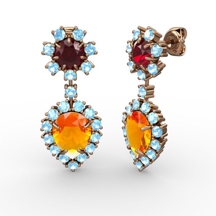 Sitrin, akuamarin ve garnet 18 ayar rose altın küpe