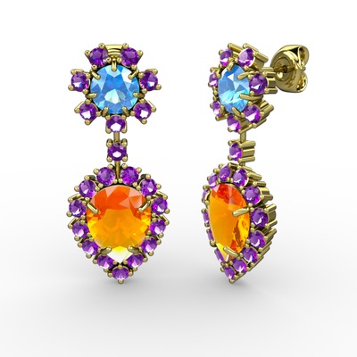 Sitrin, ametist ve akuamarin 925 ayar altın kaplama gümüş küpe