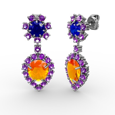 Sitrin, ametist ve lab safir 14 ayar beyaz altın küpe