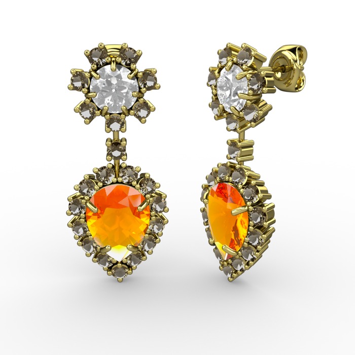 Sitrin, dumanlı kuvars ve beyaz zirkon 8 ayar altın küpe