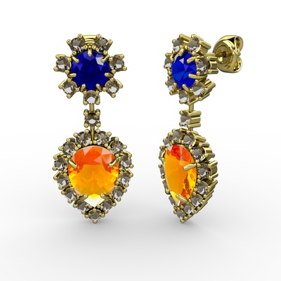 Sitrin, dumanlı kuvars ve lab safir 18 ayar altın küpe