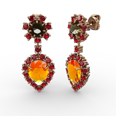 Sitrin, garnet ve dumanlı kuvars 925 ayar rose altın kaplama gümüş küpe