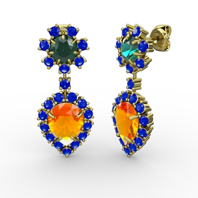 Sitrin, lab safir ve yeşil kuvars 925 ayar altın kaplama gümüş küpe