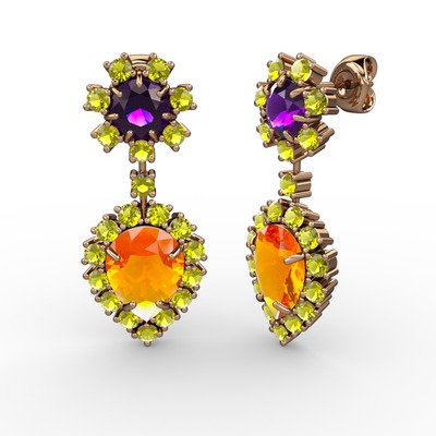 Sitrin, peridot ve ametist 18 ayar rose altın küpe