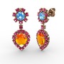 Sitrin, rodolit garnet ve akuamarin 14 ayar rose altın küpe