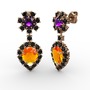 Sitrin, siyah zirkon ve ametist 18 ayar rose altın küpe