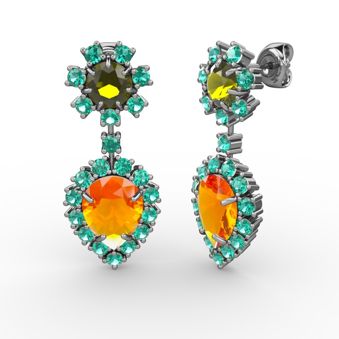 Sitrin, yeşil kuvars ve peridot 8 ayar beyaz altın küpe