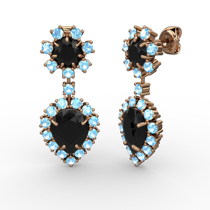 Siyah zirkon ve akuamarin 8 ayar rose altın küpe