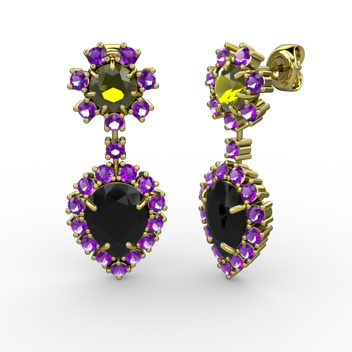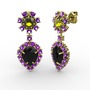 Siyah zirkon, ametist ve peridot 925 ayar altın kaplama gümüş küpe
