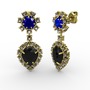 Siyah zirkon, dumanlı kuvars ve lab safir 925 ayar altın kaplama gümüş küpe