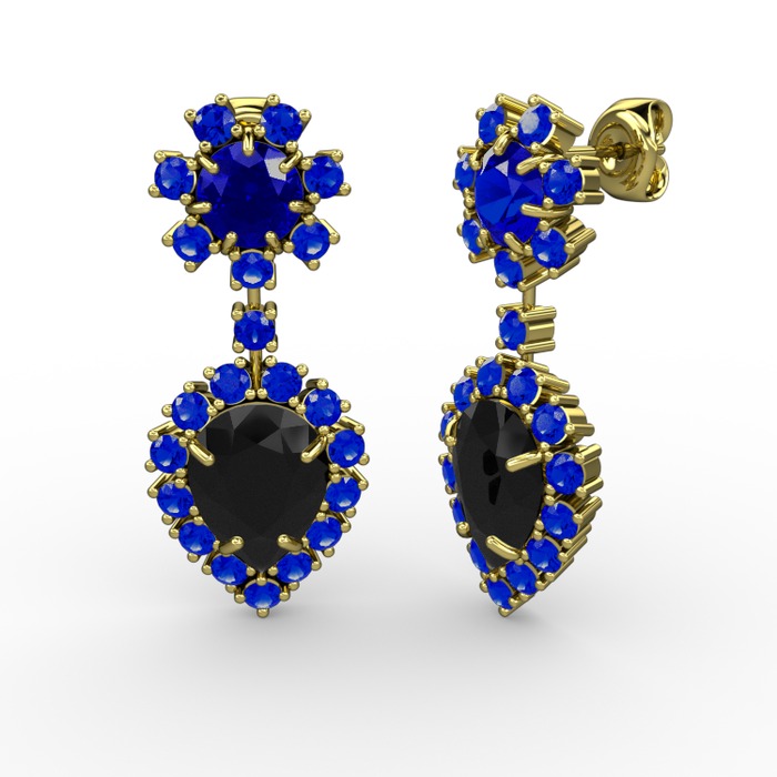 Siyah zirkon ve lab safir 18 ayar altın küpe
