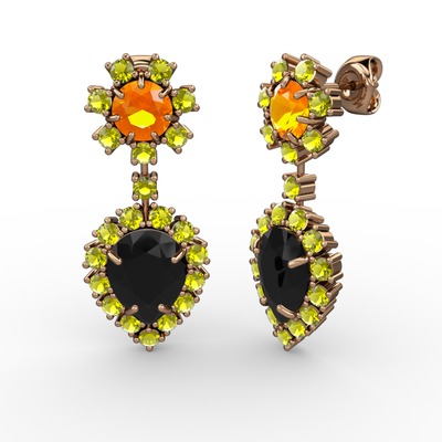 Siyah zirkon, peridot ve sitrin 14 ayar rose altın küpe
