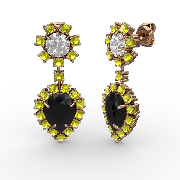 Siyah zirkon, peridot ve swarovski 925 ayar rose altın kaplama gümüş küpe
