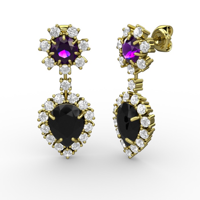 Siyah zirkon, pırlanta ve ametist 925 ayar altın kaplama gümüş küpe (0.792 karat)