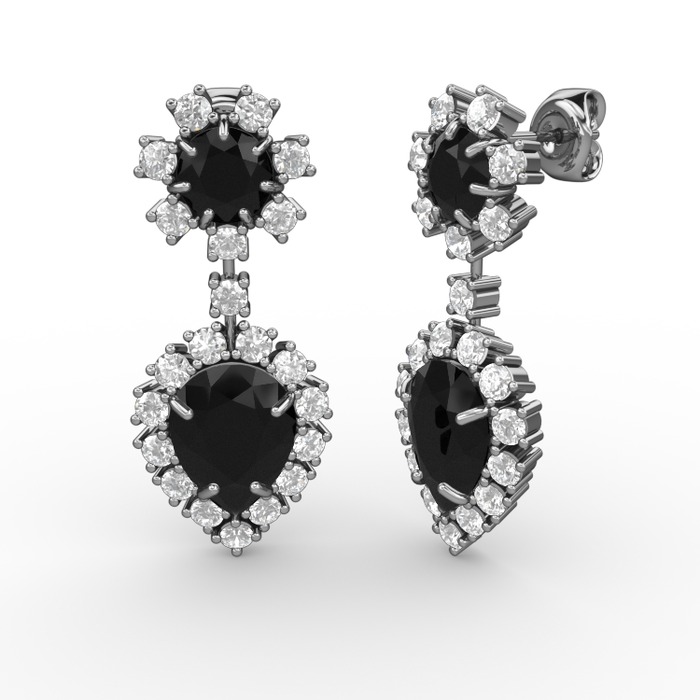 Siyah zirkon ve pırlanta 925 ayar gümüş küpe (0.792 karat)