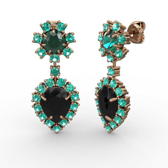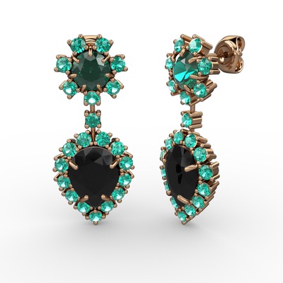 Siyah zirkon ve yeşil kuvars 925 ayar rose altın kaplama gümüş küpe