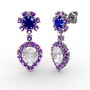 Swarovski, ametist ve lab safir 14 ayar beyaz altın küpe