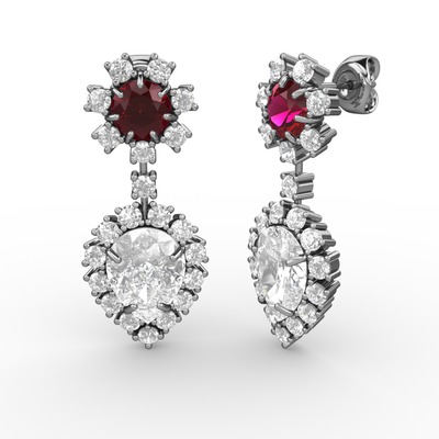 Swarovski, beyaz zirkon ve rodolit garnet 8 ayar beyaz altın küpe