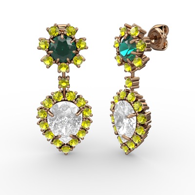 Swarovski, peridot ve yeşil kuvars 18 ayar rose altın küpe