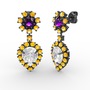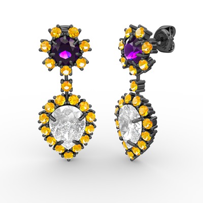 Swarovski, sitrin ve ametist 925 ayar siyah rodyum kaplama gümüş küpe