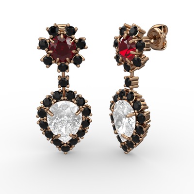 Swarovski, siyah zirkon ve garnet 8 ayar rose altın küpe