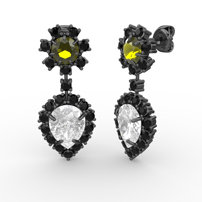 Swarovski, siyah zirkon ve peridot 925 ayar siyah rodyum kaplama gümüş küpe