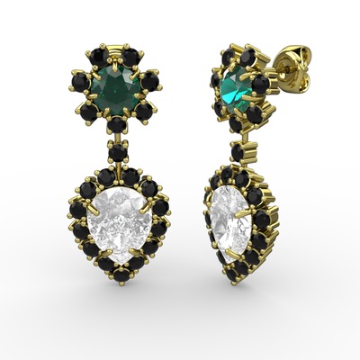 Swarovski, siyah zirkon ve yeşil kuvars 18 ayar altın küpe