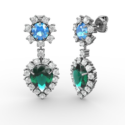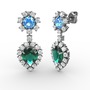 Yeşil kuvars, beyaz zirkon ve akuamarin 925 ayar gümüş küpe