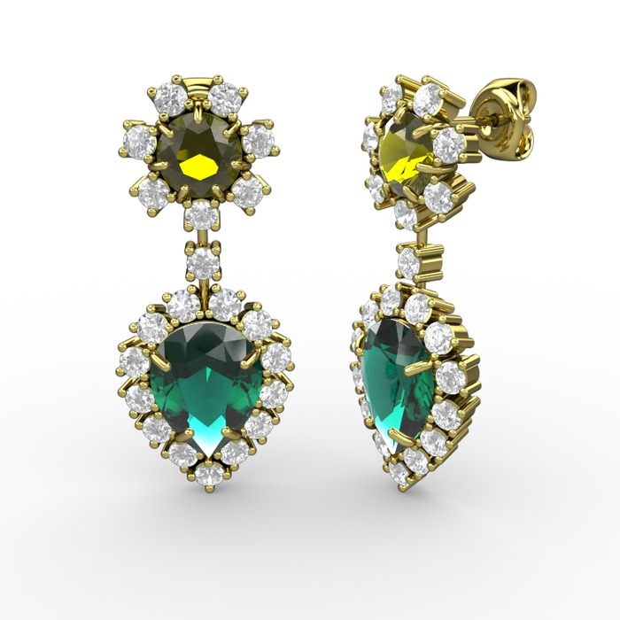 Yeşil kuvars, beyaz zirkon ve peridot 14 ayar altın küpe