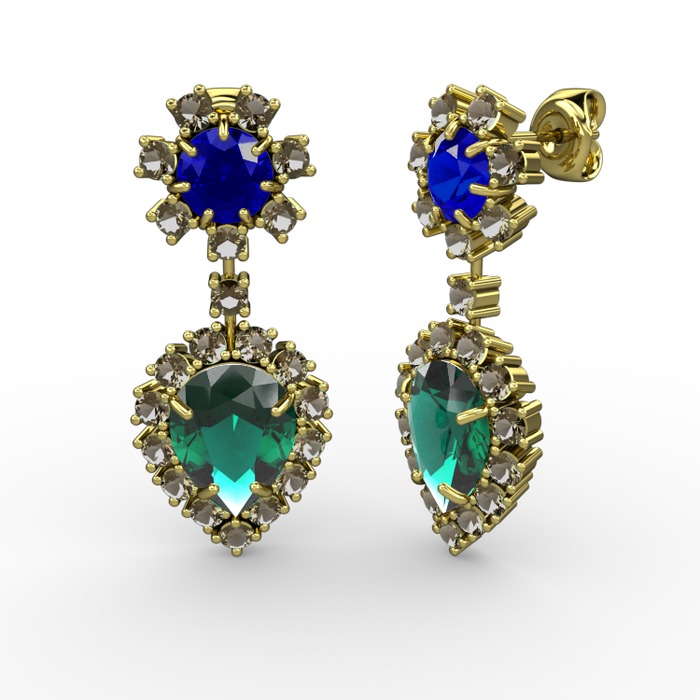 Yeşil kuvars, dumanlı kuvars ve lab safir 925 ayar altın kaplama gümüş küpe