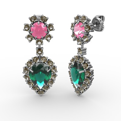 Yeşil kuvars, dumanlı kuvars ve pembe kuvars 14 ayar beyaz altın küpe