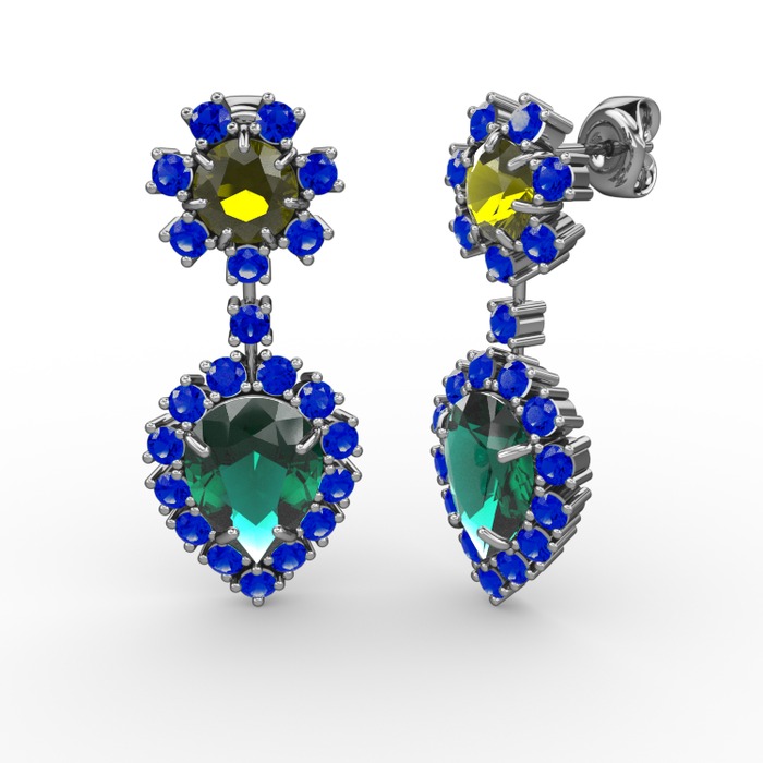 Yeşil kuvars, lab safir ve peridot 925 ayar gümüş küpe