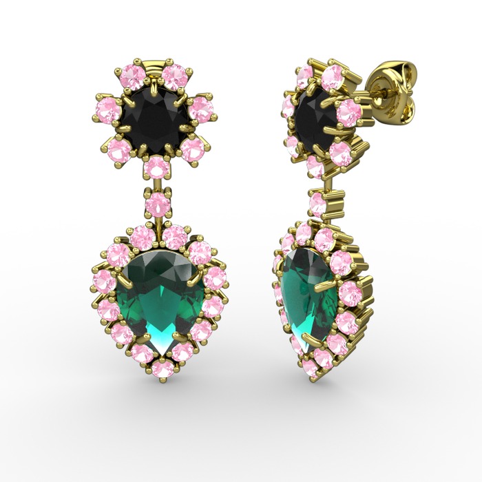 Yeşil kuvars, pembe kuvars ve siyah zirkon 14 ayar altın küpe