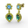 Yeşil kuvars, peridot ve akuamarin 18 ayar altın küpe