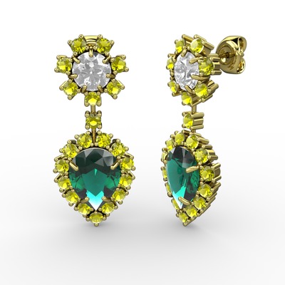 Yeşil kuvars, peridot ve beyaz zirkon 925 ayar altın kaplama gümüş küpe