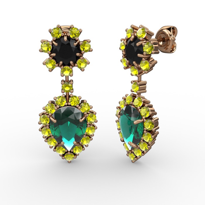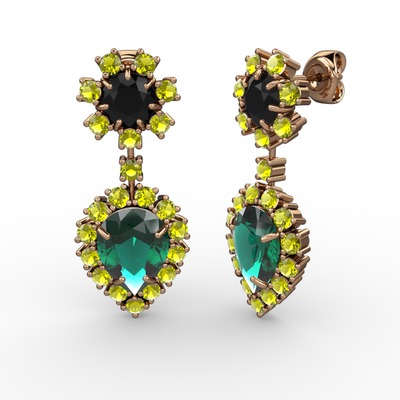 Yeşil kuvars, peridot ve siyah zirkon 18 ayar rose altın küpe