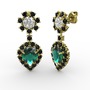 Yeşil kuvars, siyah zirkon ve beyaz zirkon 18 ayar altın küpe