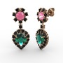 Yeşil kuvars, siyah zirkon ve pembe kuvars 14 ayar rose altın küpe