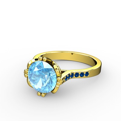 Akuamarin ve lab safir 14 ayar altın yüzük