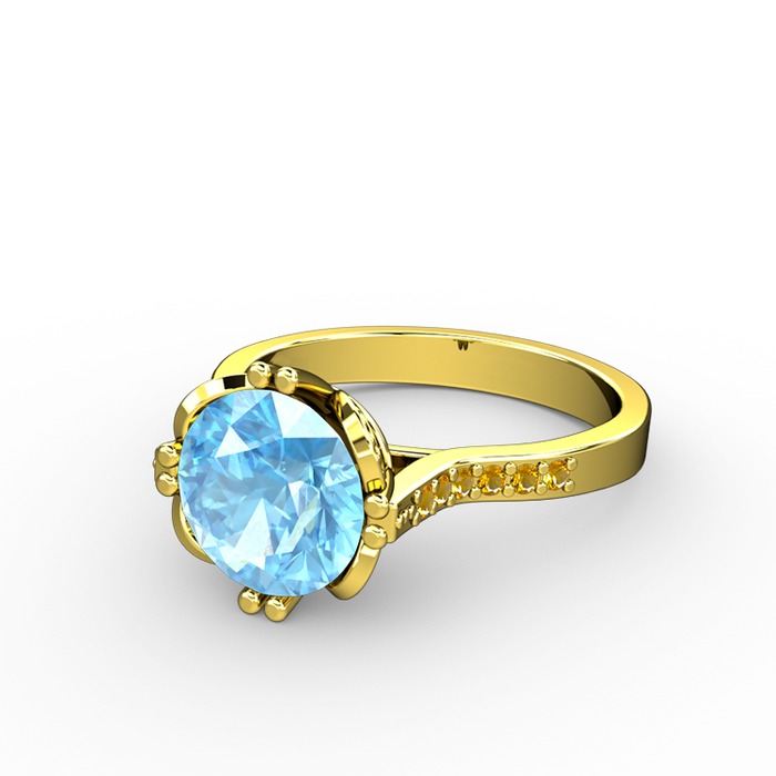 Akuamarin ve sitrin 14 ayar altın yüzük