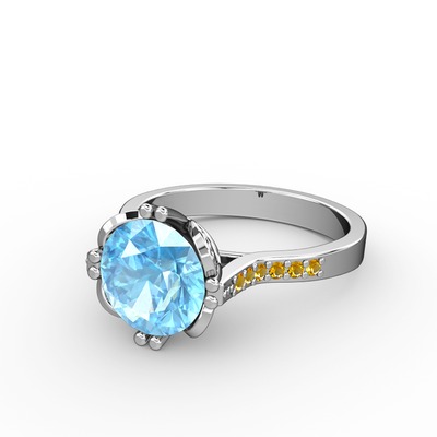 Akuamarin ve sitrin 14 ayar beyaz altın yüzük
