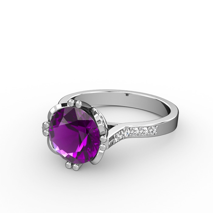 Ametist ve beyaz zirkon 8 ayar beyaz altın yüzük