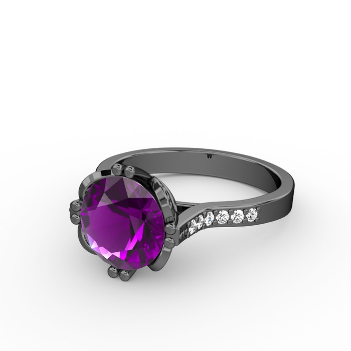 Ametist ve beyaz zirkon 925 ayar siyah rodyum kaplama gümüş yüzük